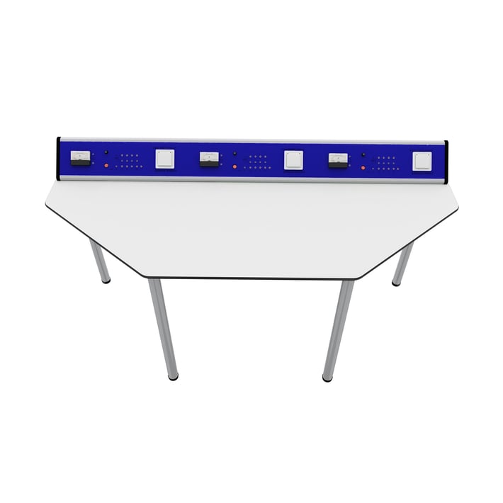 Лабораторна маса по физика RFG Quin, над VII клас, 1700 х 700 х 750 mm, HPL плот, синьо-бяла