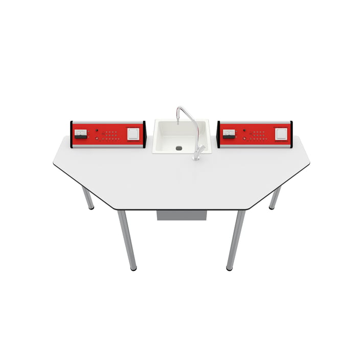 Лабораторна маса по химия и биология RFG Quin, над VII клас, 170 х 70 х 75 cm, HPL плот, метални крака, червено-бяла