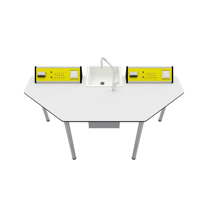 Лабораторна маса по химия и биология RFG Quin, над VII клас, 170 х 70 х 75 cm, метални крака, жълто-бяла