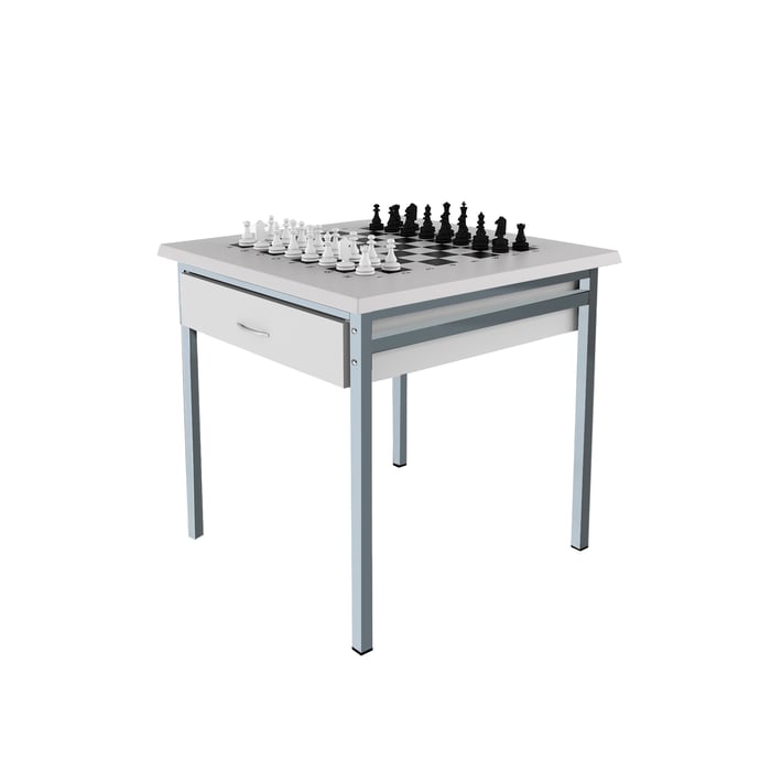 Маса за шах RFG, над VII клас, 700 х 700 х 750 mm, квадратен плот, HPL, бял плот, сиви метални крака