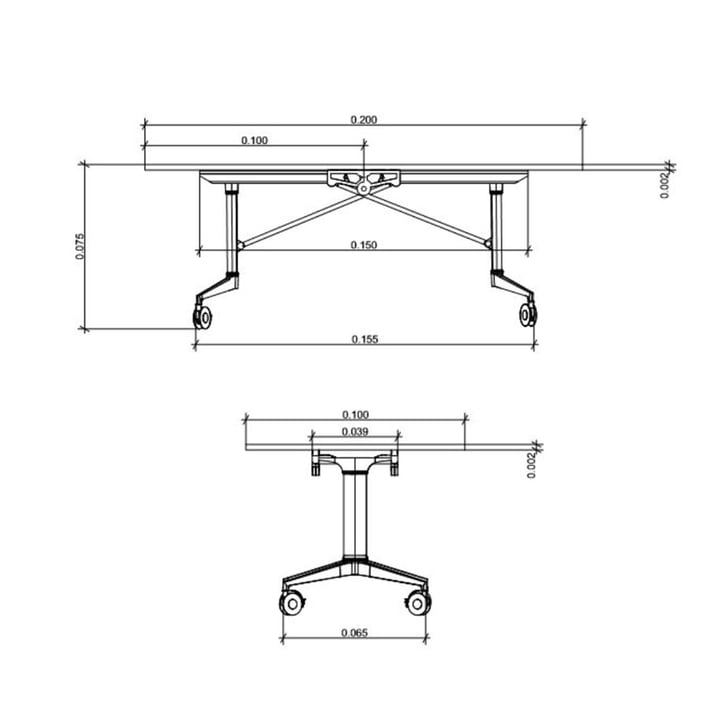 Конферентна маса RFG Butterfly, мобилна, сгъваема, 200 x 100 x 74 cm, правоъгълен плот, ПДЧ 18 mm, бяла, бели метални крака