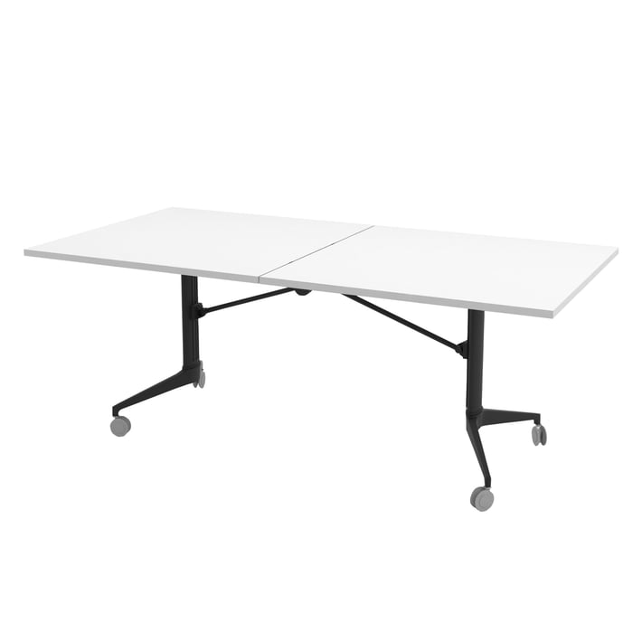 Конферентна маса RFG Butterfly, мобилна, сгъваема, 200 x 100 x 74 cm, правоъгълен плот, ПДЧ 18 mm, бяла, черни метални крака