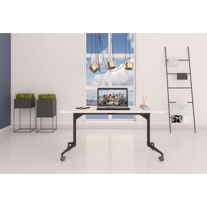 Конферентна маса RFG Flip, 160 x 80 x 74 cm, мобилна, сгъваема, правоъгълен плот, ПДЧ 25 mm, бял, черни метални крака