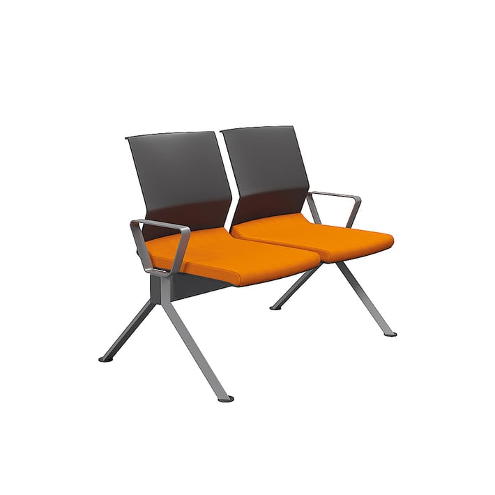 Посетителска пейка RFG Lisa Arm Black, с 2 места, текстил, метална основа, оранжева