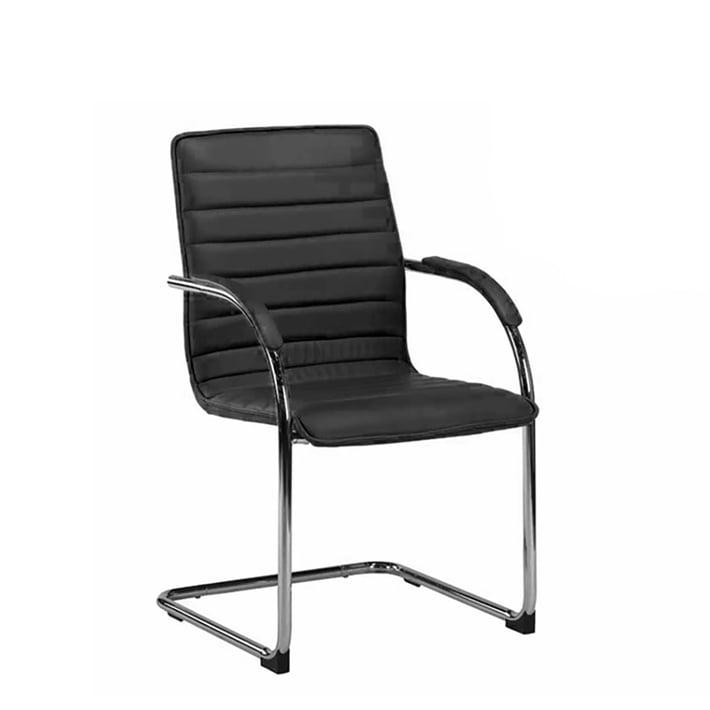 Посетителски стол RFG Sky M, екокожа, метална основа, до 120 kg, черен, 4 броя в комплект