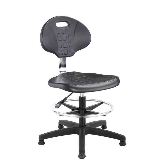 Лабораторен работен стол RFG Nero Ring, висок, полиуретан, до 130 kg, черен