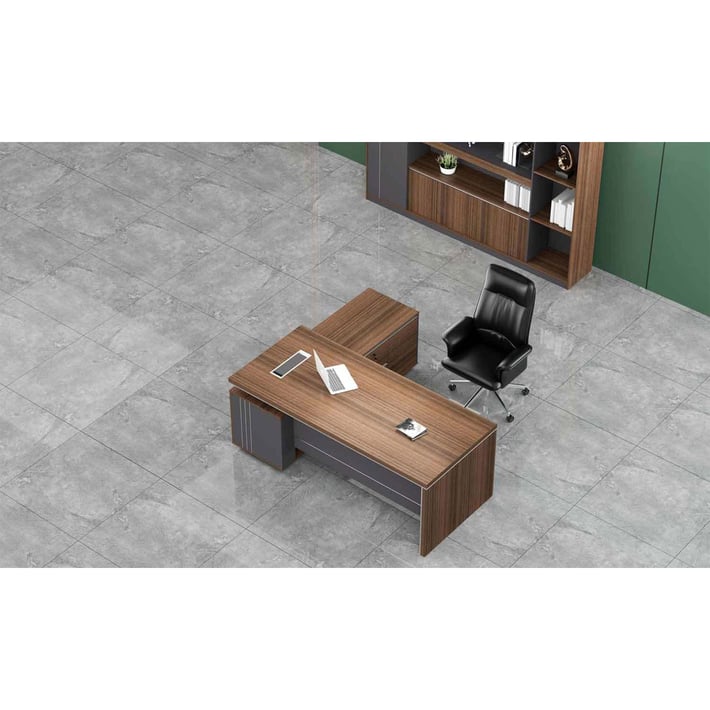 Бюро RFG Chicago, с шкаф, 2000 х 1800 х 750 mm, ПДЧ 25 mm, дъб Рейн и тъмносиво