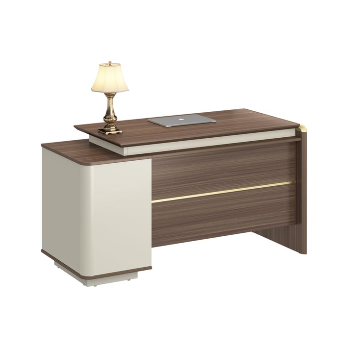 Произведено е с алуминиева рамка на предния панел и на плота, които са свързани с крака, осигурявайки не само естетика, но и здравина. Заключващият се шкаф с парола гарантира максимална защита на вашите файлове, осигурявайки поверителност и сигурност в работния ви простор.