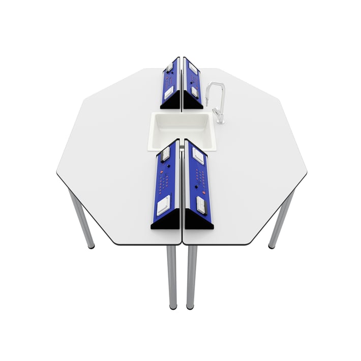 Ученическа маса RFG Hexa, лабораторна, над VII клас, 170 х 140 х 75 cm, синьо-бяла