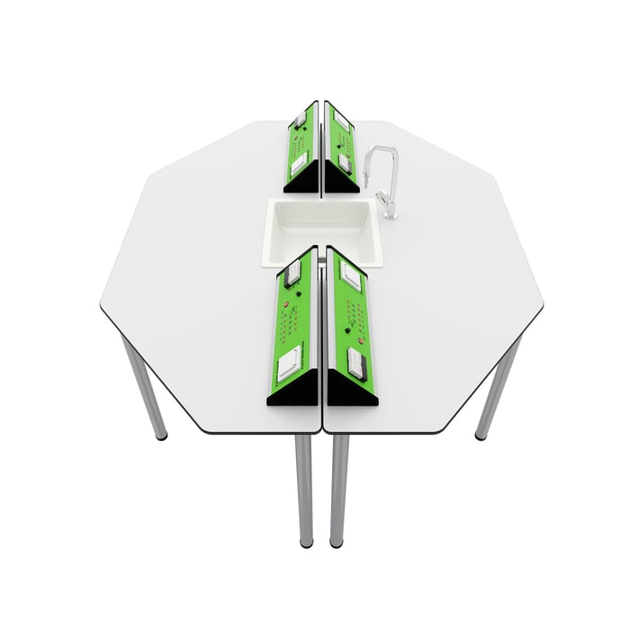 Ученическа маса RFG Hexa, лабораторна, над VII клас, 170 х 140 х 75 cm, зелено-бяла