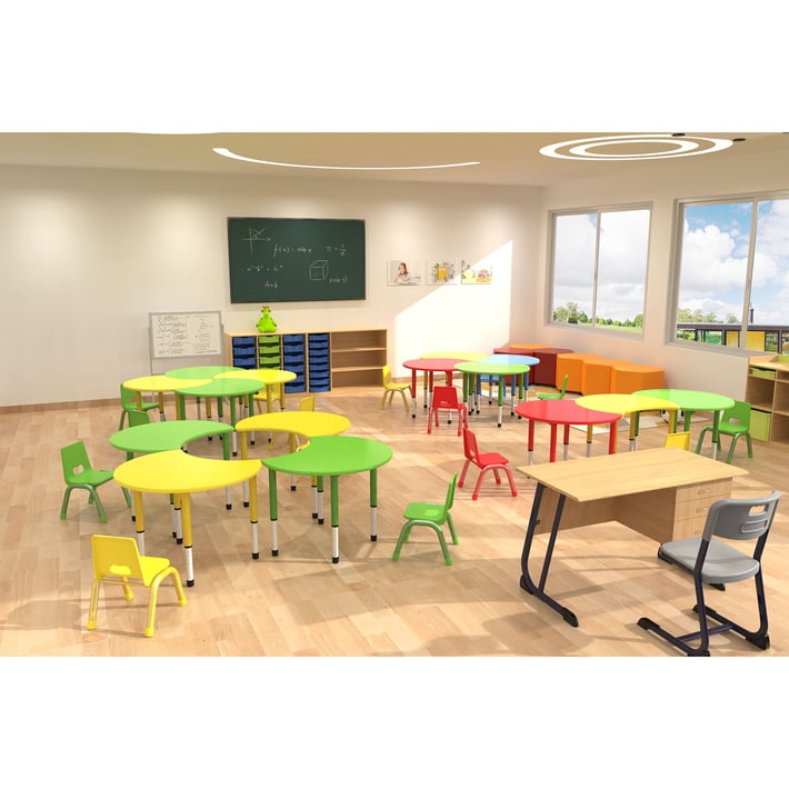 Ученическа маса RFG Moon, с регулируема височина, от I до XII клас, 900 х 900 х 550-750 mm, MDF, жълта