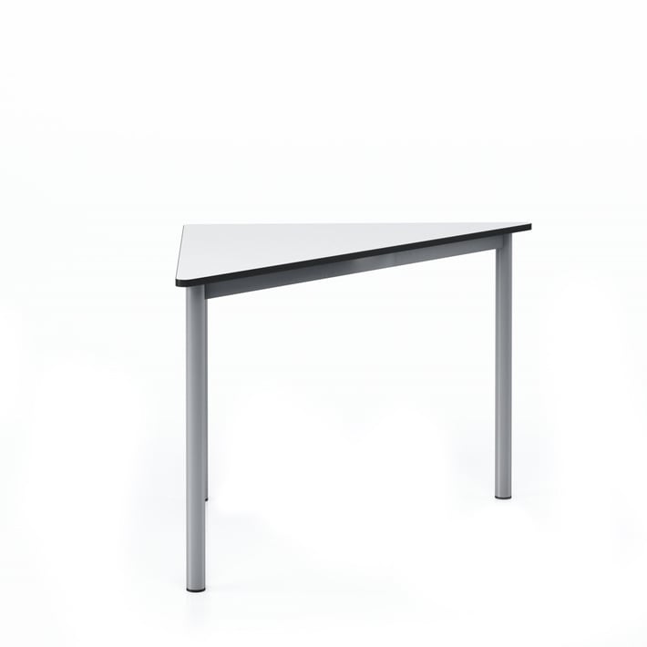 Ученическа маса RFG Trapez 45, над VIII клас, 650 х 1250 х 750 mm, модулна, триъгълна, HPL, бял плот, сиви метални крака