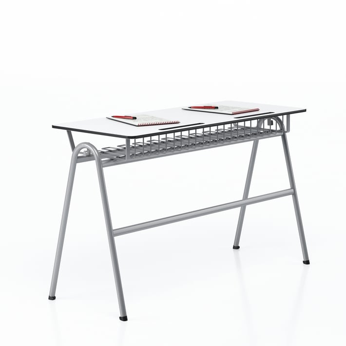 Ученически чин RFG Letme, двоен, над VIII клас, 1100 х 500 х 750 mm, HPL, бял плот, сиви метални крака