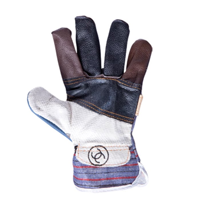 • Работни ръкавици, изработени от лицева разноцветна телешка кожа и плат, с подсилена длан.