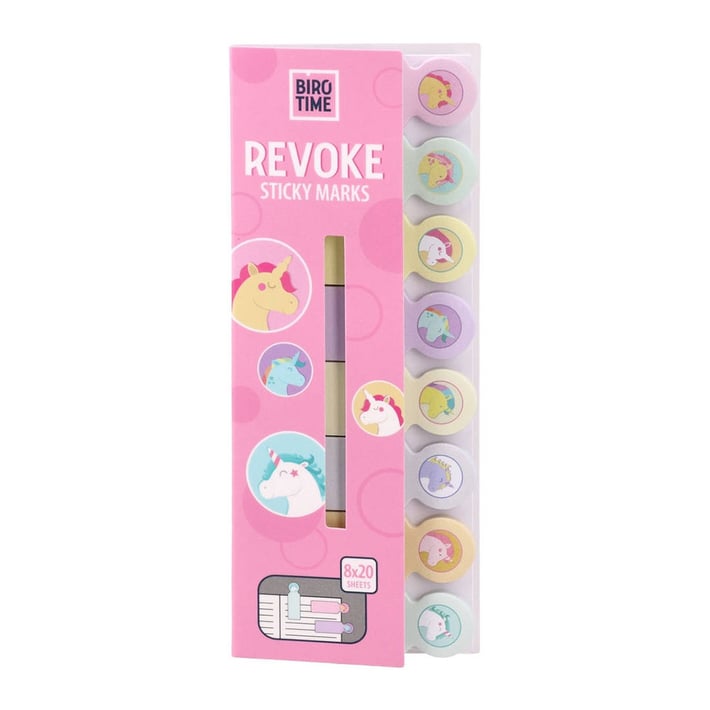 Самозалепващи се индекси Biro Time Revoke, еднорог, 8 вида х 20 листа