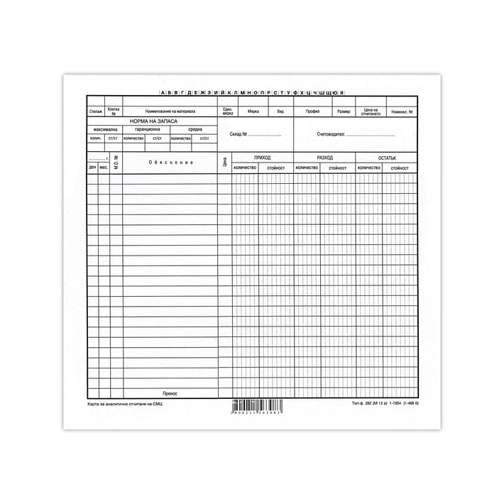 • Формуляр за аналитично отчитане стоково материални ценности.