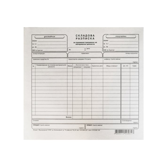 • Складов документ, с който се документира приемането и предаването на стоки.