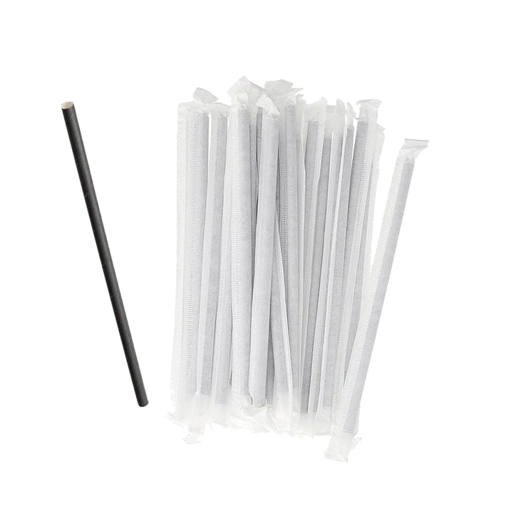 Черни хартиени сламки единично опаковани, изработени от PAP 21 - Невълнообразен картон.