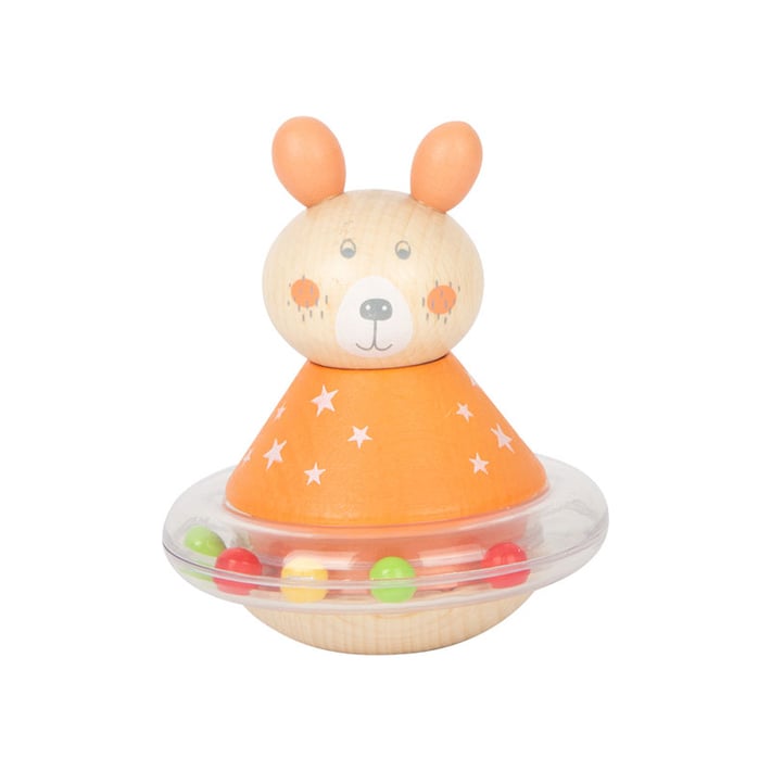 Бутайки ги, дрънкалките се люлеят напред и назад, докато цветните мъниста в пластмасовия пръстен издават вълнуващи звуци.