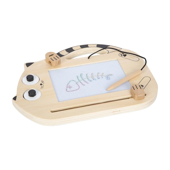 Магнитната дъска за рисуване във формата на котка от Small Foot е чудесен избор за малките творци, които обичат да изразяват въображението си чрез рисуване. Тази детска дървена играчка съчетава забавление и обучение, като предоставя неограничени възможности за създаване на красиви рисунки и писане на букви и цифри.