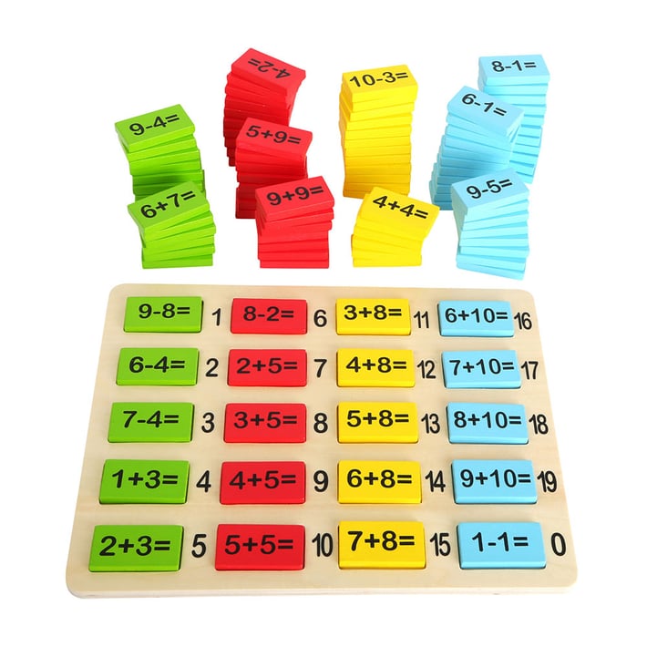 Особено когато смятате върху дървената дъска със задачи. Изчислените уравнения трябва да бъдат съпоставени с подходящото решение на дървената дъска. Дъската със задачи ви позволява да правите уравнения с числата от 1 до 20. Това е оптимален инструмент за упражнения по математика за деца в началното училище. Цветните части мотивират малките математици да учат по забавен начин. И така, кой ще бъде първият, който реши всичките уравнения?