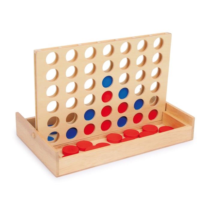Дървена версия на класическата забавна игра. Целта на играта е да се изгради ред от четири фигури. Няма значение дали вертикално, хоризонтално или диагонално. Проблемът е, че противникът винаги може да преобърне тези "планове".