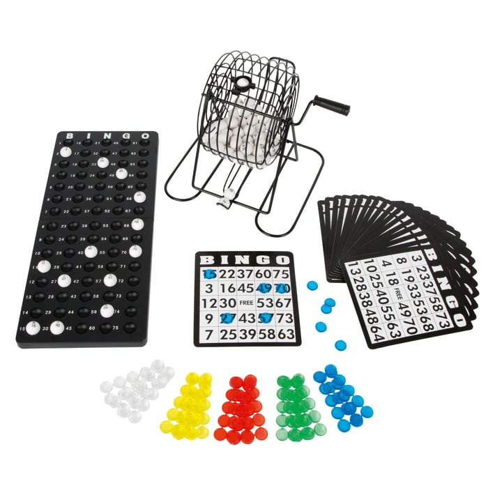 Комплектът съдържа всички необходими аксесоари за играта бинго.