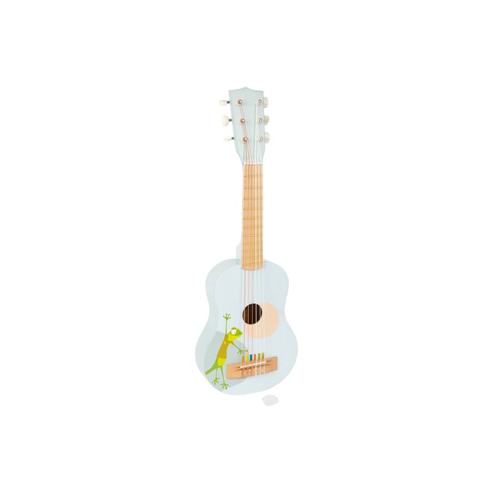 Дървена китара с реалистичен дизайн и струни, подходяща за начинаещи музиканти.
