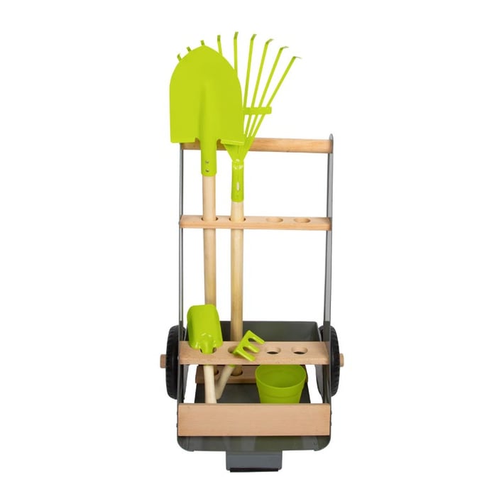 В допълнение към съществуващите аксесоари, количката за инструменти предлага място за други градински инструменти и също така насърчава активните ролеви игри за децата.