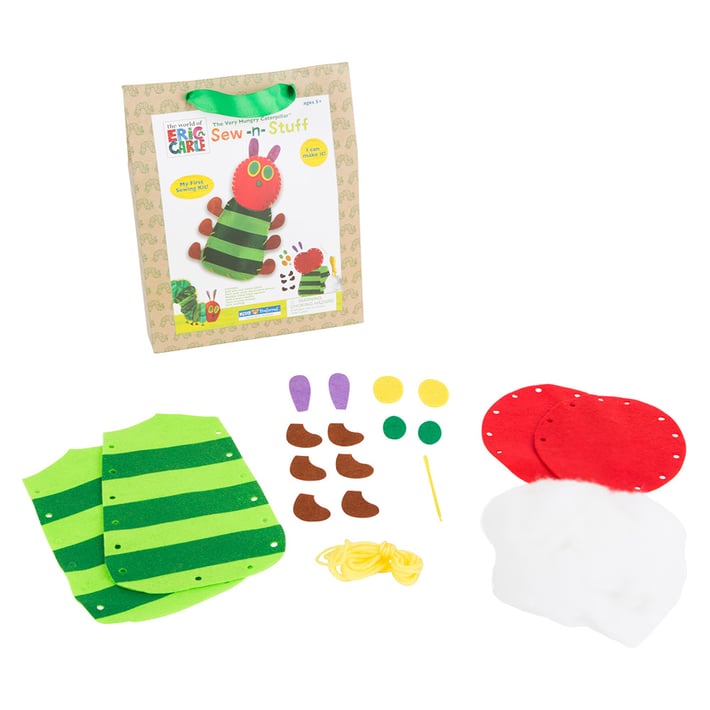 Творческият комплект за шиене на гъсеница намира идеално приложение в детските градини, за да могат дори най-малките да ушият своя забавен приятел-гъсеница. Предварително нарязаните парчета се пришиват с голямата безопасна пластмасова игла и се прикрепят с апликатори.