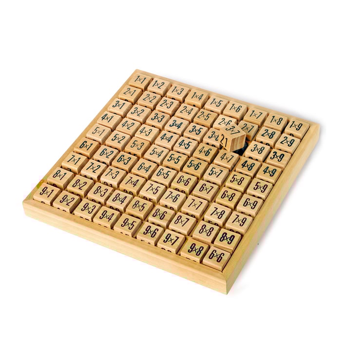 Дървена рамка с 81 масивни блокчета, съдържащи от едната страна задачата за изчисление, от другата страна - решението. 4 от страните са без надпис, което позволява да се напишат задачи с по-големи числа!