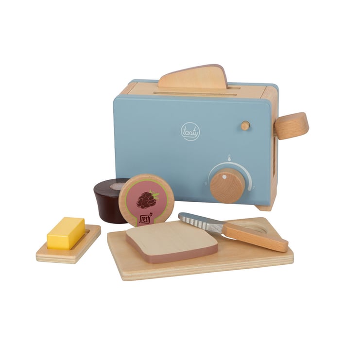 Изобилните аксесоари, съставени от филийки препечен хляб, нож, масло и мармалад, предлагат реалистично забавление при игра заедно с щракащите звуци на бутона за температура.