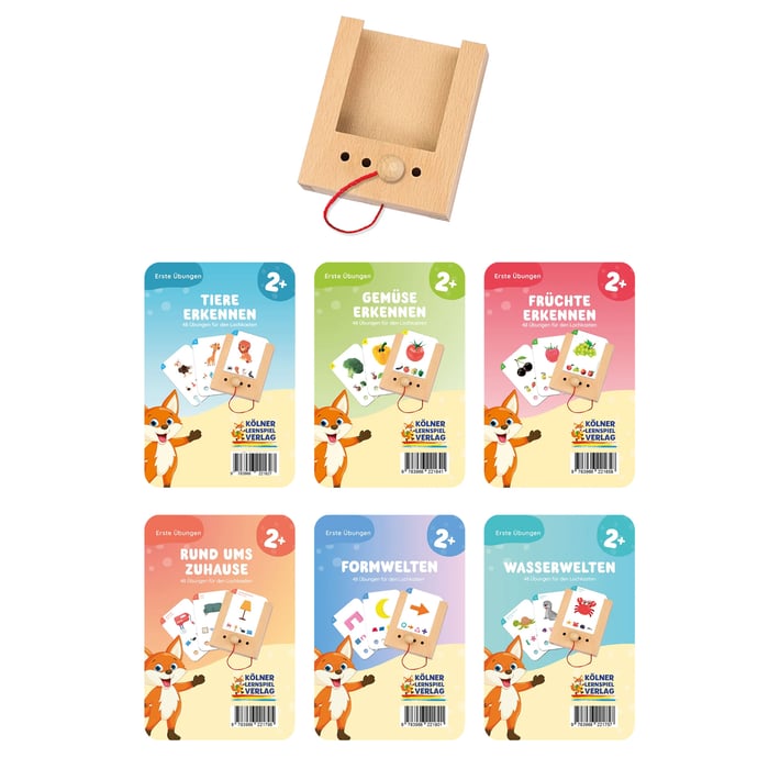 Шест комплекта образователни карти, подходящи за деца над 2 години. Един комплект карти съдържа 24 двустранни карти с общо 48 упражнения: