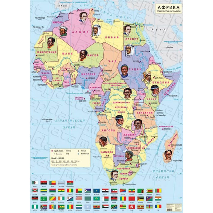 Стенна карта на Африка, политическа, 100 x 140 cm, ламинирана
