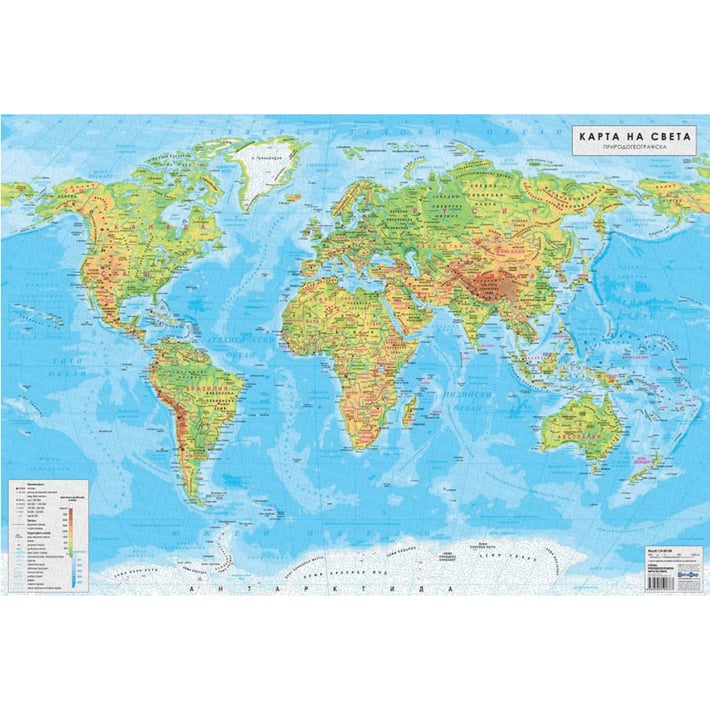 Стенна карта на света, физическа, 140 x 100 cm, ламинирана