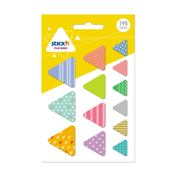Stick'n Самозалепващи се индекси Триъгълници, асорти, 195 броя