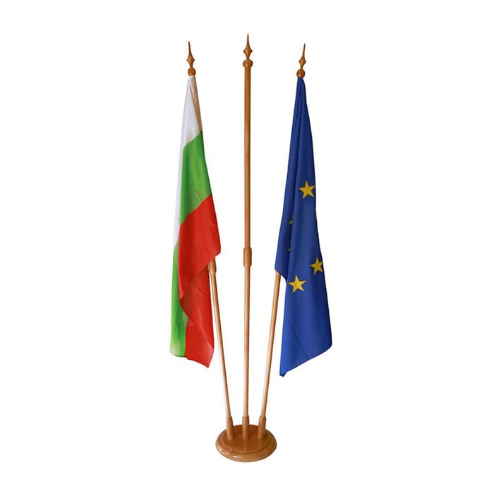 • Дървена тройна стойка за знаме, подходяща за кабинети.
