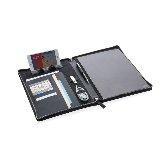 • Вътрешният панел предоставя стойка за таблет/телефон, държачи на джаджи, слотчета за визитки, ръкави за вашите бележки и документи.