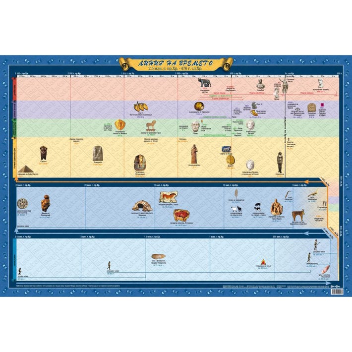 • Учебно табло ''Линия на времето''. Летоброенето започва от 2.5 млн. г. пр.н.е. до 476 г. сл.н.е. Подходящо е за часовете по история.