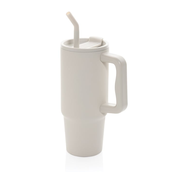 Изработена от здравa рециклирана неръждаема стомана, чашата е проектирана да издържи на интензивна употреба. Двойната вакуумна изолация поддържа напитките горещи или студени за по-дълго, а капакът със завиване предлага две опции – удобен отвор за отпиване или възможност за използване на включената стоманена сламка със силиконов накрайник.