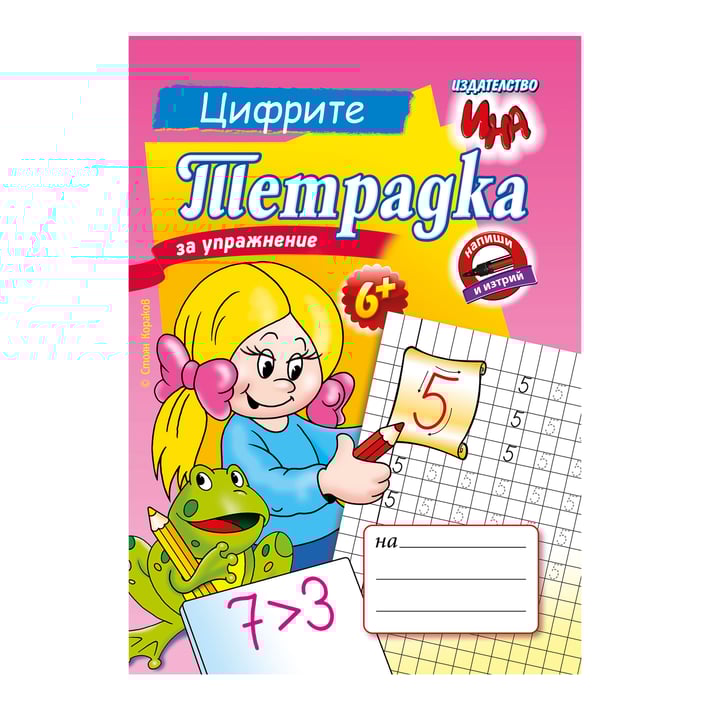 Тетрадката разполага и с място, където децата ще се упражняват да пишат сами. Тя е с квадратчета, а допълнителните черти показват какъв трябва да е наклонът на цифрите. В средата има специално приложение от типа на „Напиши и изтрий“. На него с флумастер (неперманентен) може многократно да се пише и трие (с леко влажно памуче). Така детето се упражнява многократно, докато постигне отличния резултат.