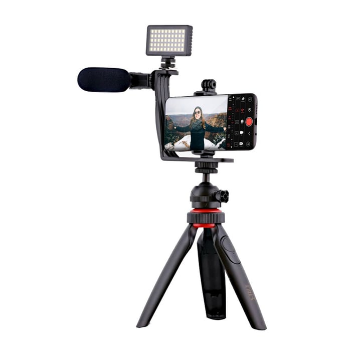 Заснемете своето творчеството и дайте свобода на своята креативност с този комплект с аксесоари за влогъри. Той съдържа всичко необходимо за вашите видеоклипове: статив, държач за смартфон, микрофон, LED светкавица и Bluetooth дистанционни управления, филтри.