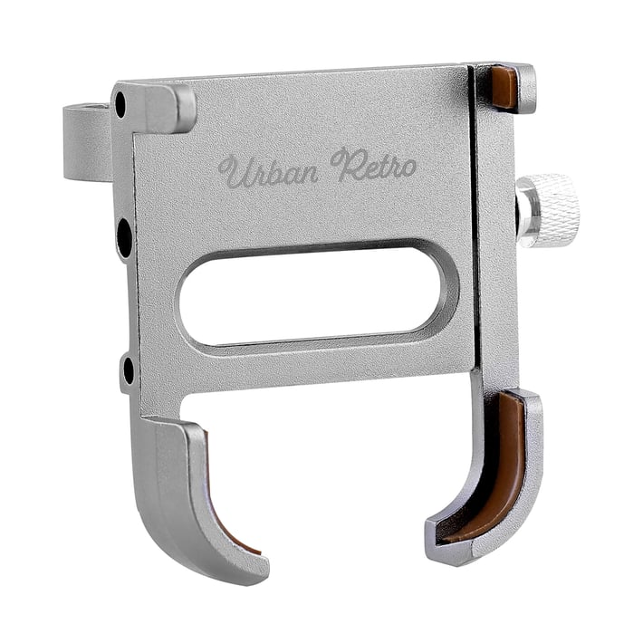 Комбинирайте винтидж стила с модерността и градската тенденция.Тази универсална стойка се адаптира към всички смартфони с широчина от 55 до 105 mm. Съвместима с всички дръжки на велосипед с диаметър от 22.2 до 32 mm, тя се закрепва много лесно: имате нужда само от шестостенен ключ (включен в комплекта), за да я завинтите към кормилото.Стойката позволява да позиционирате смартфона в портретен или пейзажен режим. Алуминиевият състав гарантира здравина и стабилност.Доставя се със силиконови ленти, които се поставят между фиксиращия пръстен и кормилото, за да се гарантира добра опора и да се избегнат драскотини.
