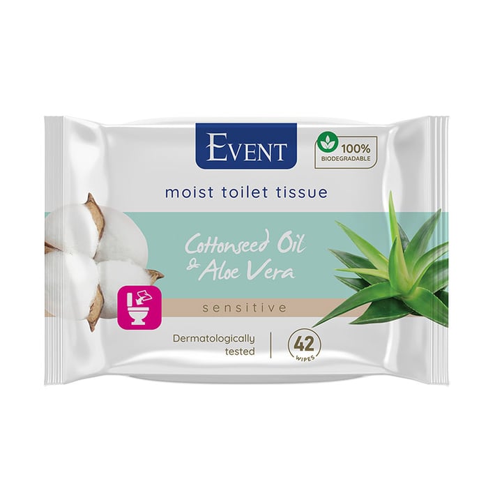 Влажната тоалетна хартия е чудесно допълнение към ежедневната употреба на суха хартия. Маслото от памук в комбинация с екстракта от алое способстват за успокояване на раздразнената кожа в интимните зони и хидратирането ? в дълбочина. Изработени от водоразтворими влакна, кърпичките могат да се изхвърлят в тоалетната чиния, при всяко пускане на водата - 2 броя. Биоразградими, с неутрално pH.