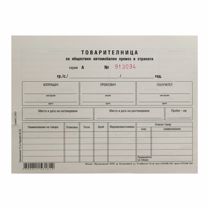 Товарителница, номерирана, 100 листа