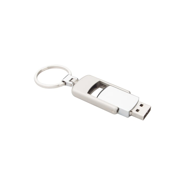 • Сгъваема, метална USB флашка с памет и ключодържател.
