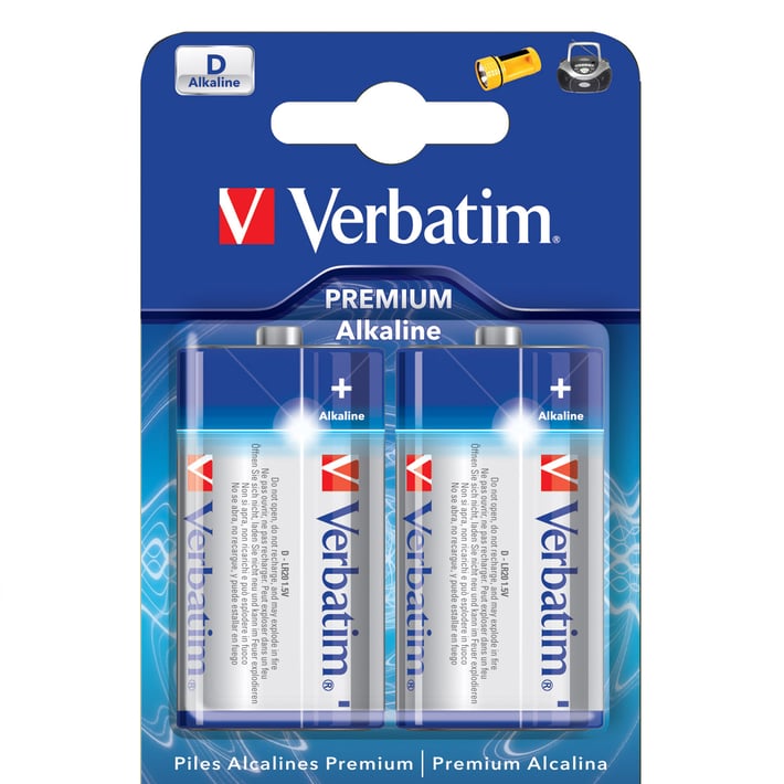 Алкална батерия Verbatim, D, LR20, 1.5 V, 2 броя