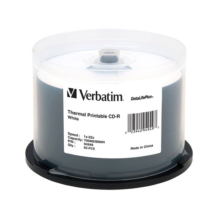 CD-R Verbatim, 700 MB, 52x, с бяло покритие за мастиленоструен печат, 50 броя в шпиндел