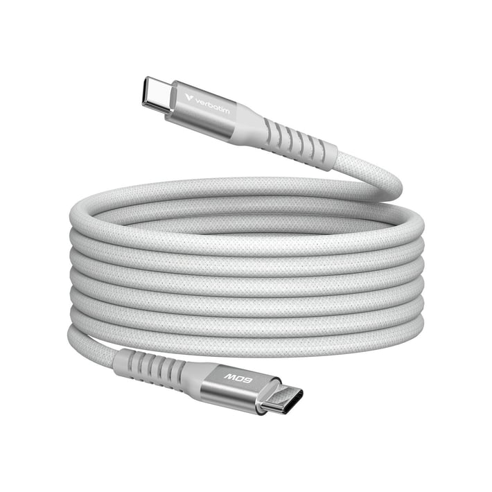 Кабел Verbatim Sync & Charge, магнитен, USB Type-C към USB Type-C, 60 W, 120 cm, сив