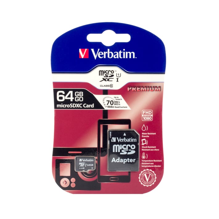 Карта памет Verbatim, microSDXC, UHS-I, U1, Class 10, 64 GB, с включен SD адаптер